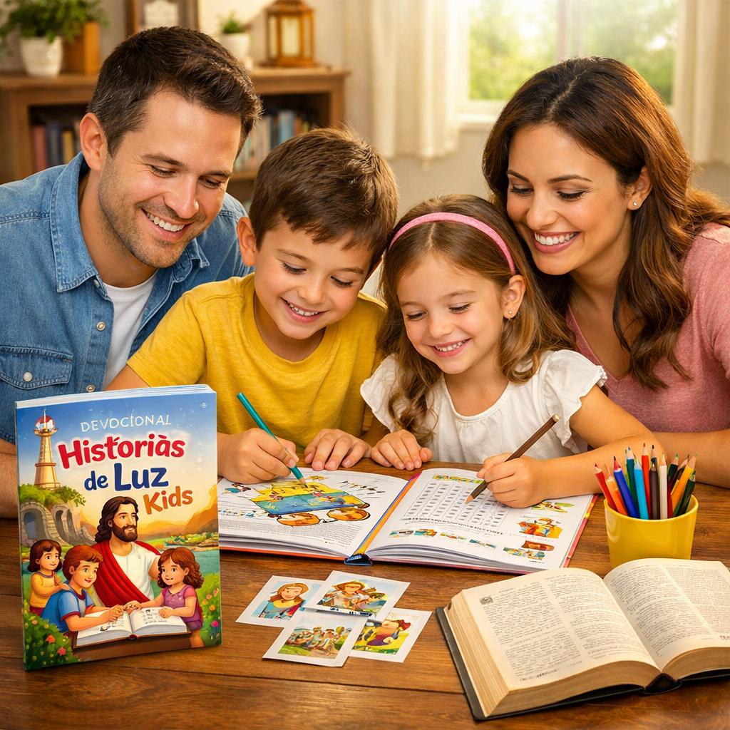 Tenha acesso ao KIT Devocional + Histórias de Luz (vol. 1 e 2) + Certificado de leitura e + 10 bônus exclusivos. São Mais de 600 páginas de atividades bíblicas prontas para imprimir. Atividades que já ajudaram milhares de pais e educadores no Brasil! COMECE HOJE A FAZER A DIFERENÇA NA VIDA DE SEUS FILHOS CRIANDO O HÁBITO DE LER A BÍBLIA COM ELES